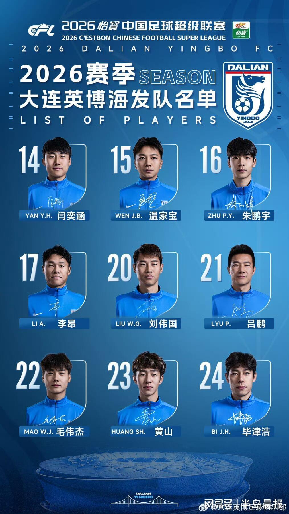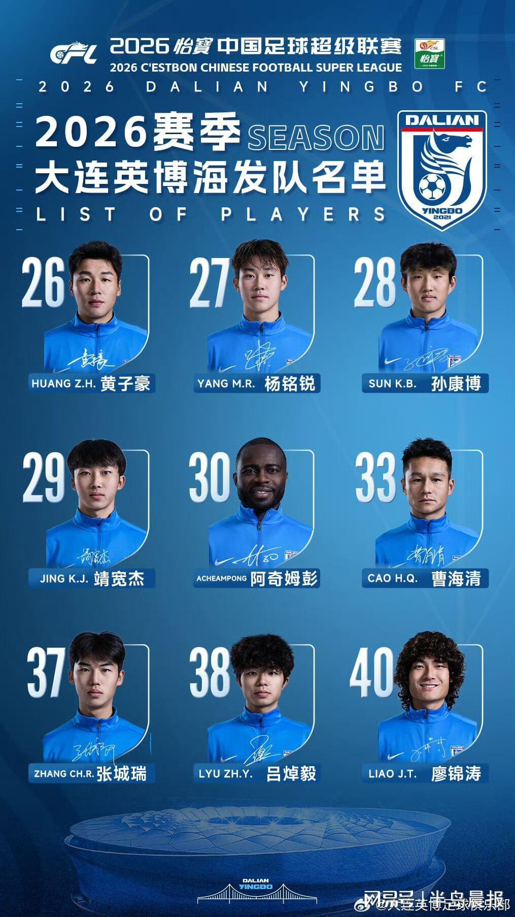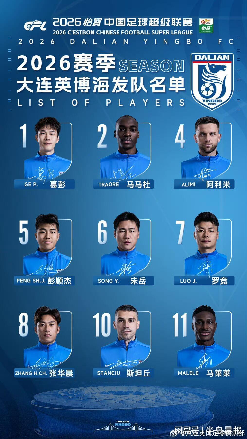 3月5日,距离中超首战还有2天,大连英博正式公布了新赛季名单。陆续公布新援时,他们的球衣号码就都已经确定,其中,罗竞7号,张华晨8号,斯坦丘10号,李昂17号,刘伟国20号,孙康博28号,阿奇姆彭30号,冯劲44号。年轻球员也都各自落位,5号属于小将彭顺杰。 半岛晨报、39度视频记者隋海涛...