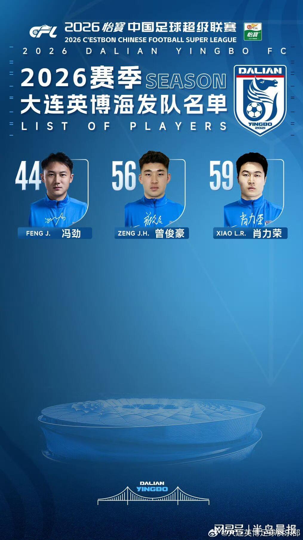 3月5日,距离中超首战还有2天,大连英博正式公布了新赛季名单。陆续公布新援时,他们的球衣号码就都已经确定,其中,罗竞7号,张华晨8号,斯坦丘10号,李昂17号,刘伟国20号,孙康博28号,阿奇姆彭30号,冯劲44号。年轻球员也都各自落位,5号属于小将彭顺杰。